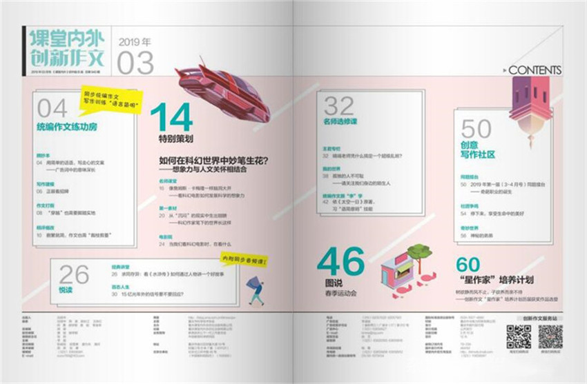 打開雜志,看到欄目“摘抄本”“高分范本”“精批細改”“經典講堂”“名師選修課”,你就會明白作文雜志編輯的良苦用心。它不僅“授人以魚”,而且“授人以漁”,它上面既有學生的優秀作文,又有名師指導的作文方法。有了這本雜志,就擁有了一位好的作文老師。