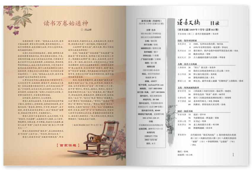 《讀書文摘》歸屬長江出版集團由湖北人民出版社協辦,是一本以思想性為指導、明確面向廣大讀書人的刊物,基本思路是“古今中外,天下妙文”,尤其注重對國內各出版社新書籍內容的推介。