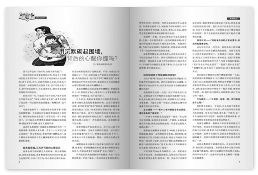 《家教世界》文風活潑輕松,語言簡明易懂,屢屢家庭生活界領軍作用的重頭文章,給人帶來了深刻的影響,通過自信、自我、童趣、哲理幾個方向,給少兒提供營養美文閱讀。
