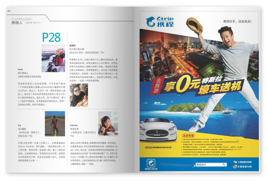 《攜程自由行》雜志受攜程旅行網(wǎng)的委托,是集實(shí)用性、欣賞性、互動(dòng)性于一體,定位于中、高級(jí)商務(wù)人士的高端旅游雜志,是國(guó)內(nèi)發(fā)行量較大、覆蓋最廣、目標(biāo)讀者最明確的旅游雜志。