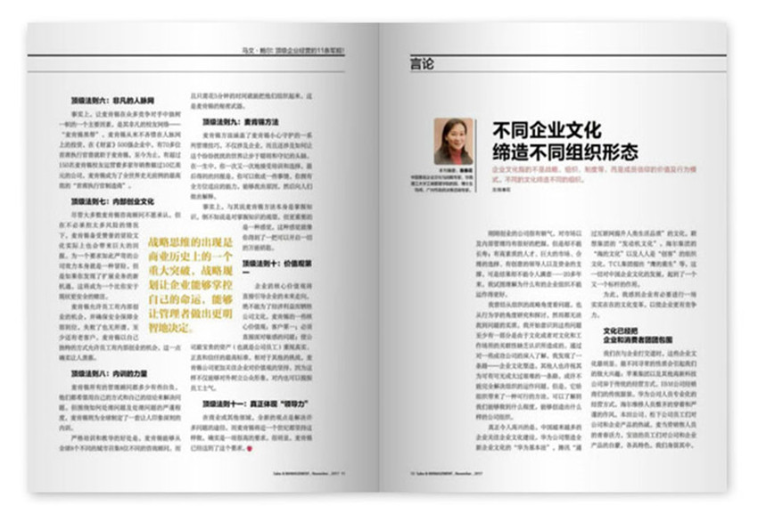 作為中國管理類雜志的新秀,一直遵循前瞻性與實用性并重的理念,不斷為中國企業(yè)管理者提供全面客觀精準的理論指導與實踐分析、辦刊宗旨:提升企業(yè)中高層管理者的綜合管理能力、雜志定位:卓越實踐、引領成長、核心讀者:公司高管、合伙人、中高層管理人員、專業(yè)人士等等。