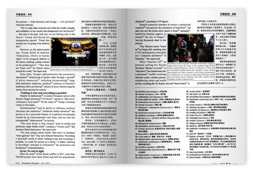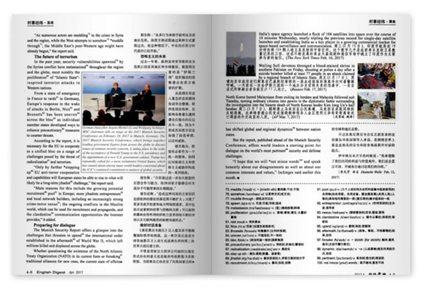 《英語文摘》內容詳實、觀點新穎、文章可讀性強、信息量大,眾多的欄目設置,英語文摘公認譽為具有業(yè)內影響力的雜志之一。