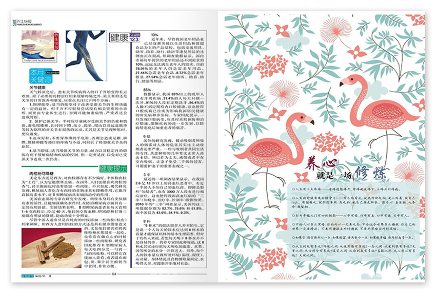 以40-60歲的中老年人為主要讀者群體,定位于有一定經濟條件同時關注養生、有精力有時間有能力的中老年人,除了傳達“以養防病、以養祛病”的理念外,還會是一本關注中老年人及家庭成員身心健康的養生期刊。